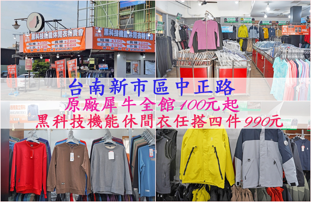 2026年【原廠犀牛黑科技機能服飾特賣會台南新市區中正路】全新盛大開賣,地點就在最方便的台南新市火車站附近(中正路)!眼看 2 月就要過年了,還在煩惱全家人的新衣沒著落嗎?趕緊趁現在來大掃貨!這次廠拍誠意滿滿,全館竟然只要 100 元起,無論是長短袖上衣、機能長短褲,還是男女款背心,通通隨你挑、隨你選,任搭四…