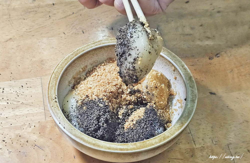 我們來到「黑金燒麻糬] ,花生和芝麻口味都很香。麻糬軟Q,花生香甜,一口咬下就停不下來,是這趟土庫小旅行的療癒小點心。