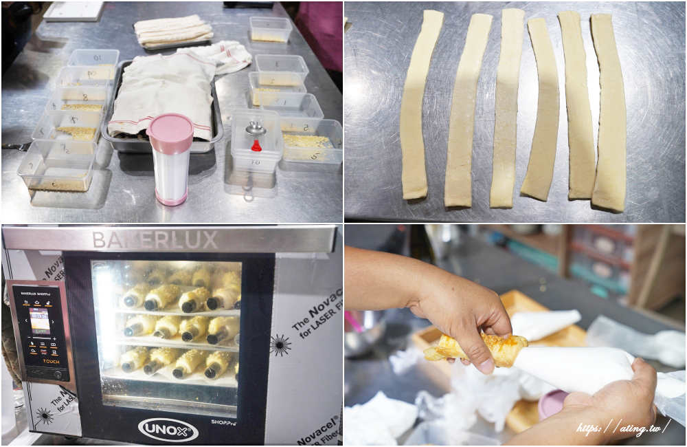 出爐後擠餡、撒上糖粉完成,帶回家冷凍還能體驗不同風味,外酥內餡口感滑順,真的好吃到停不下來。